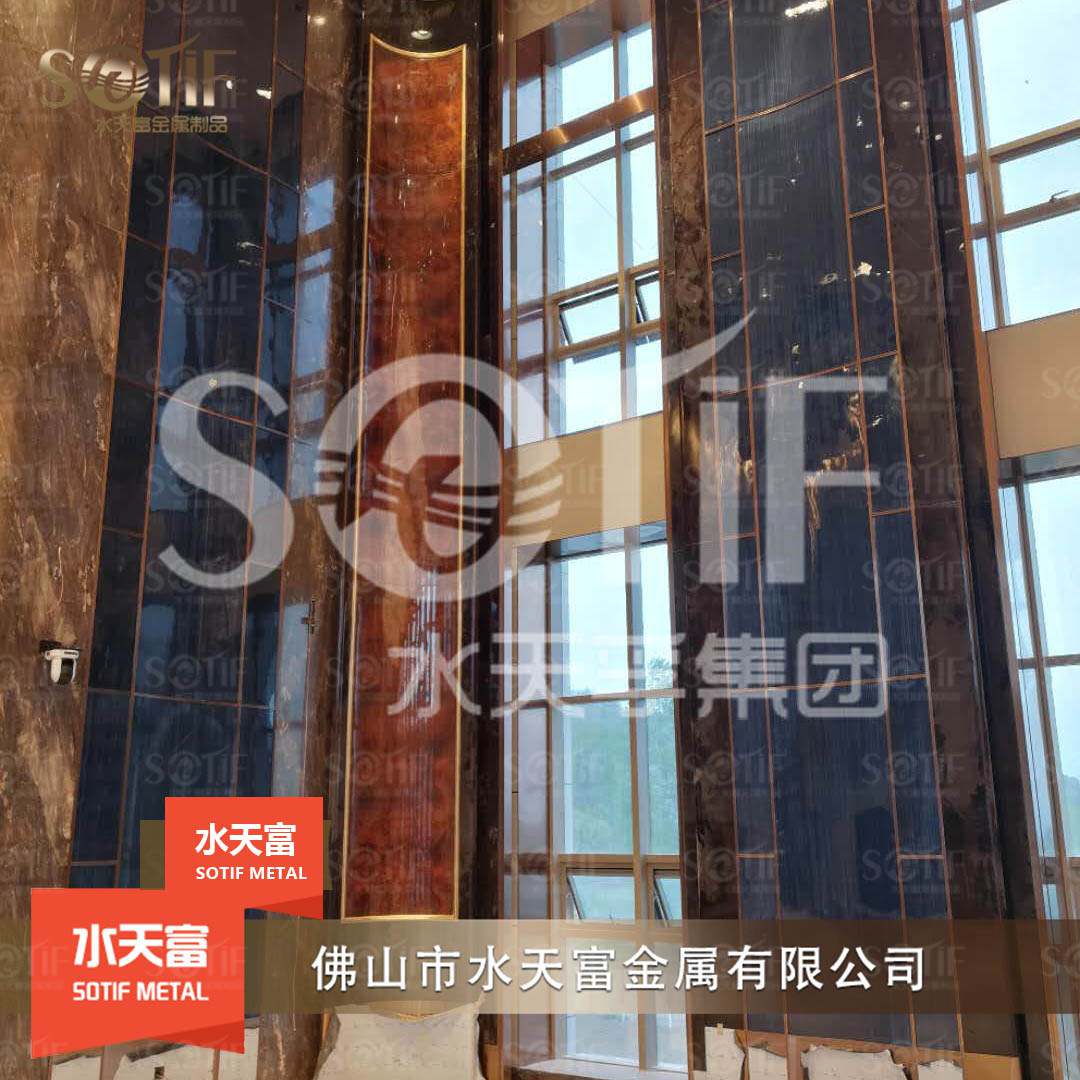 蘭州酒廠內墻裝飾使用石紋覆膜板、鈦金板等多種板材裝飾,質感厚實有分量、紋路清晰好看。其裝飾采用的是佛山水天孚集團出品的不銹鋼板材與制品。</span>