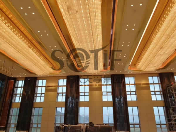 不銹鋼玫瑰金與樹脂板的完美結合,展現宴會廳的雍容華貴,見證我們的作品。
