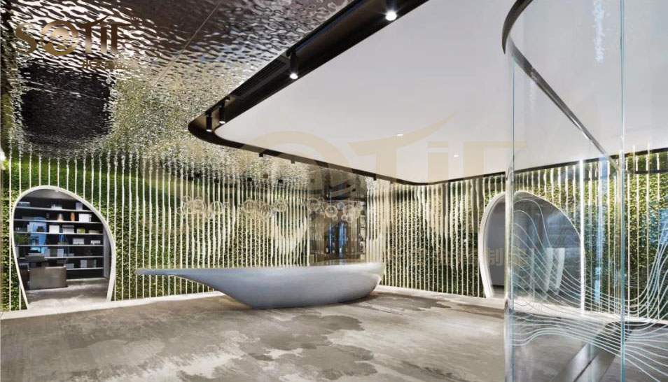 “水波紋板”顧名思義表面紋理類似水波蕩漾,裝飾效果強(qiáng),造型新穎這類材料近兩年在景觀建筑等領(lǐng)域又一次掀起了熱潮許多高端標(biāo)識(shí)案例中也開(kāi)始有了新的應(yīng)用尤其是一些酒店、餐飲類的高檔場(chǎng)所一些運(yùn)用到不銹鋼材質(zhì)的水波紋板效果令人驚艷,不銹鋼的特殊材質(zhì)可以使使產(chǎn)品從視覺(jué)上層次更豐富,但是不銹鋼波紋板是何種制作工藝以及到底如何運(yùn)用的呢?