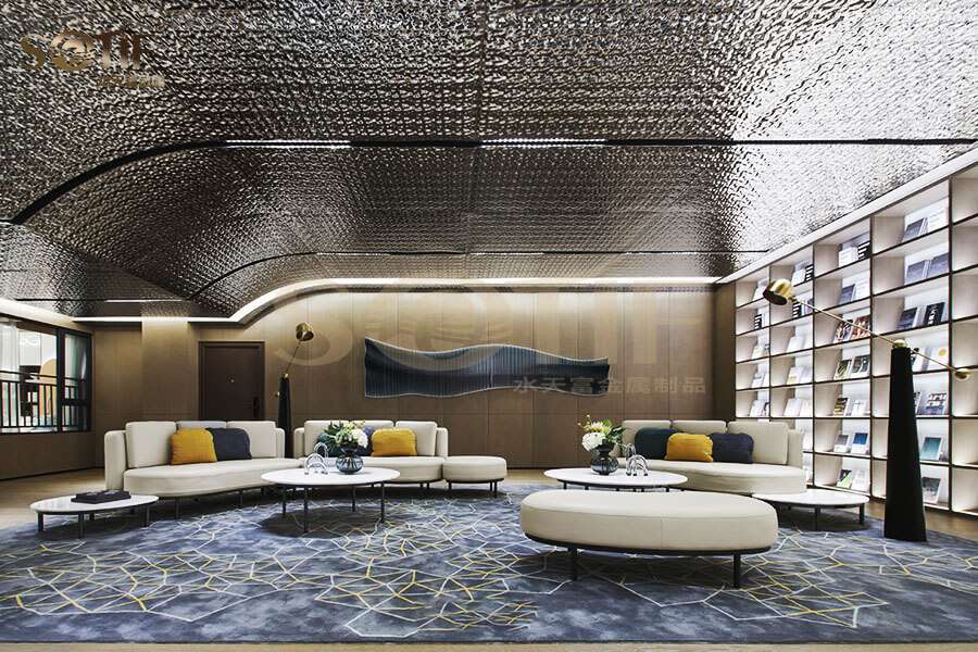 為什么天花板強(qiáng)調(diào)波紋不銹鋼板而不是不銹鋼貼面?其實(shí)大家都知道,一個比較大的特點(diǎn)就是平整度高,剛性好,不變形,貼面有點(diǎn)表面化。不銹鋼水波紋板,效果會比不銹鋼貼面好很多。表面獨(dú)特的水波紋,還有一種鏡面的效果,對比傳統(tǒng)的不銹鋼,外觀水平直接反轉(zhuǎn)攻擊,刷新了它在家居裝修中單調(diào)的外觀。所以作為吊頂用了,也有了它獨(dú)有的裝飾性。