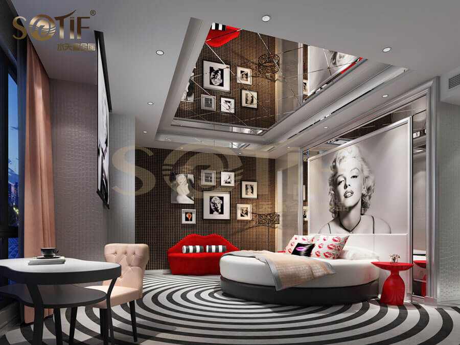鏡面不銹鋼水波紋板整體裝飾效果,會(huì)顯得空間更加敞大,配合燈光效果,使得十分有格調(diào),輕奢豪華。
