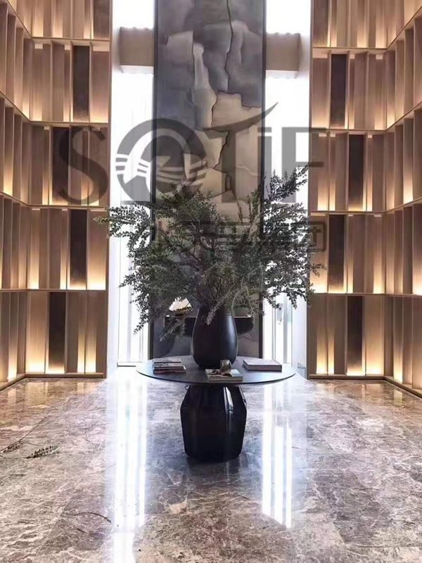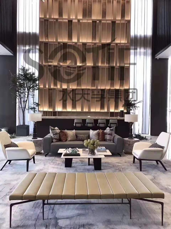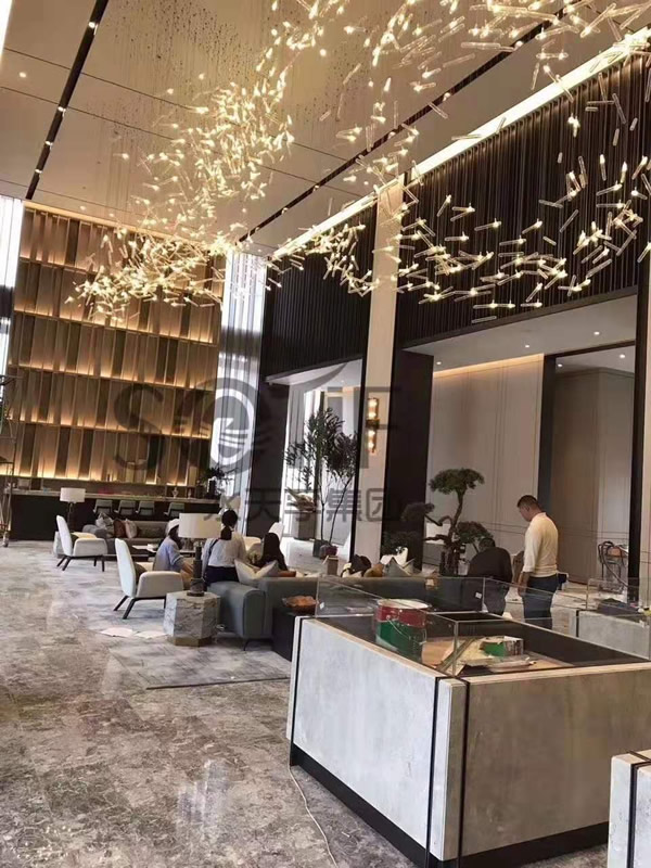 成都保利天悅售樓部,手敲銅是亮點。銅板的加工工期歷時1個多月完工,效果真的很不錯。