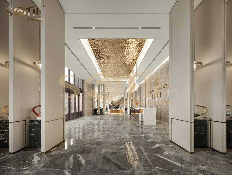 在商業空間的裝飾中,對防火會更高,像是售樓處,百貨商店,酒店等,使用不銹鋼水波紋板進行裝飾,可以滿足堅固,耐沖擊,耐腐蝕和耐彩色等性能需求;可以在外墻和潮濕區域;立面幕墻,衛生間,水幕美化區等場所使用。