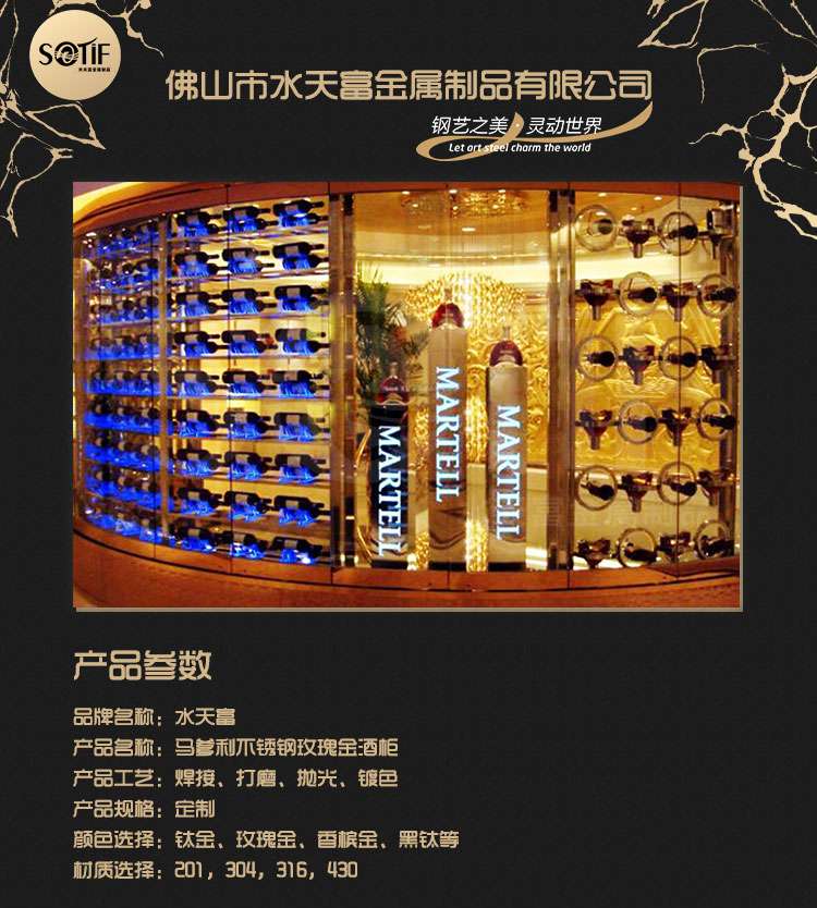 馬爹利不銹鋼玫瑰金酒柜